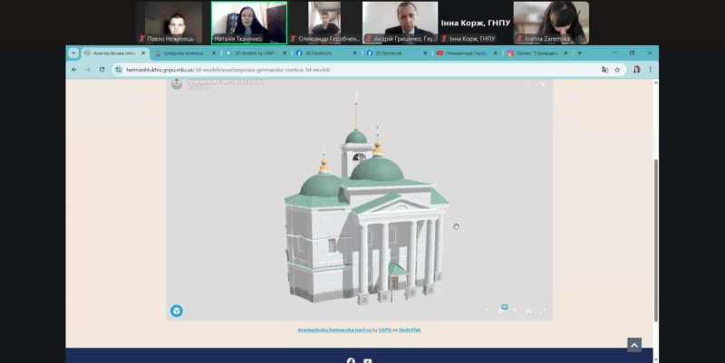 08.10.2025 р. здобувачі освіти Сумського державного університету спеціальностей «Середня освіта (Історія та громадянська освіта»), «Історія та археологія», а також викладачі кафедри історії СумДУ взяли участь в онлайн-виставці з елементами екскурсії «Архітектурна пам’ять Глухова: Анастасіївські храми в 3D».